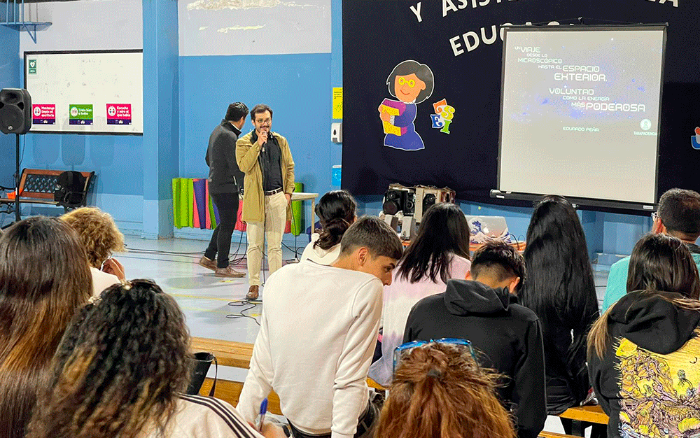 Eduardo Peña, astronauta iquiqueño y director del Centro de Investigación de Medicina de Altura de la Universidad Arturo Prat, dictó una charla para los alumnos y alumnas de nuestro Colegio Nocturno Bulnes gracias al Programa Explora.